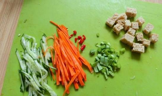 配料:牛筋面,胡萝卜,蒜瓣,小米椒,芝麻酱,食盐,辣椒油,黄瓜,面筋,青蒜叶,香菜,香醋,白砂糖等