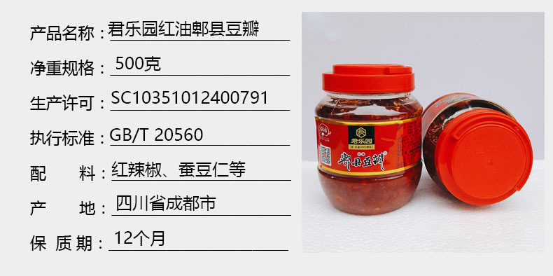 君乐园四川郫县豆瓣红油豆瓣酱旗舰店商用家用豆瓣酱炒菜烧菜瓶